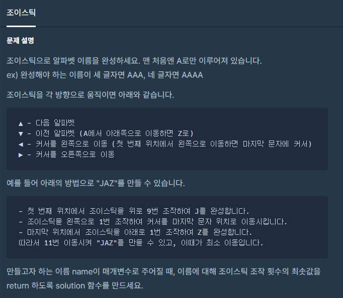 [프로그래머스 JavaScript] 조이스틱 본문