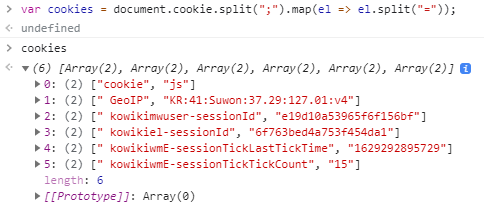 각 쿠키는 ; 로 구분되어 있어서 split로 쪼개고 다시 한번 key, value에 맞게 쪼개서 적절히 사용하면 된다.