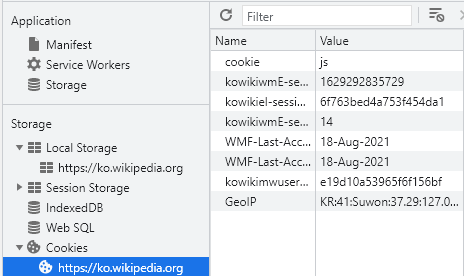 - cookie와 마찬가지로 개발자 도구에서 확인가능하고 key, value쌍으로 저장이 된다.