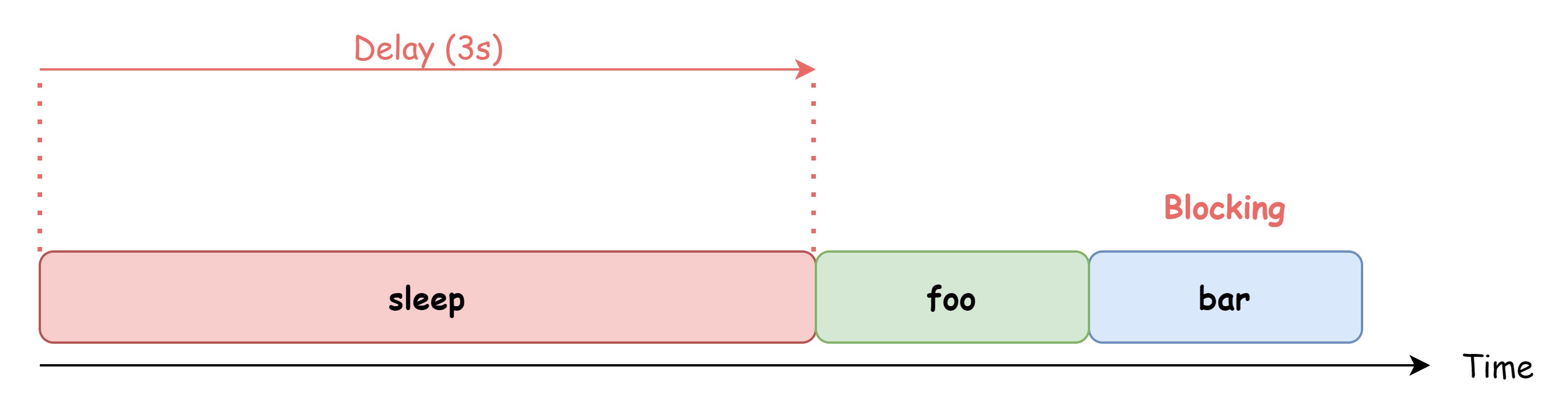 위 예제의 sleep 함수는 3초 후에 foo 함수를 호출한다. 이때 bar 함수는 sleep 함수의 실행이 종료된