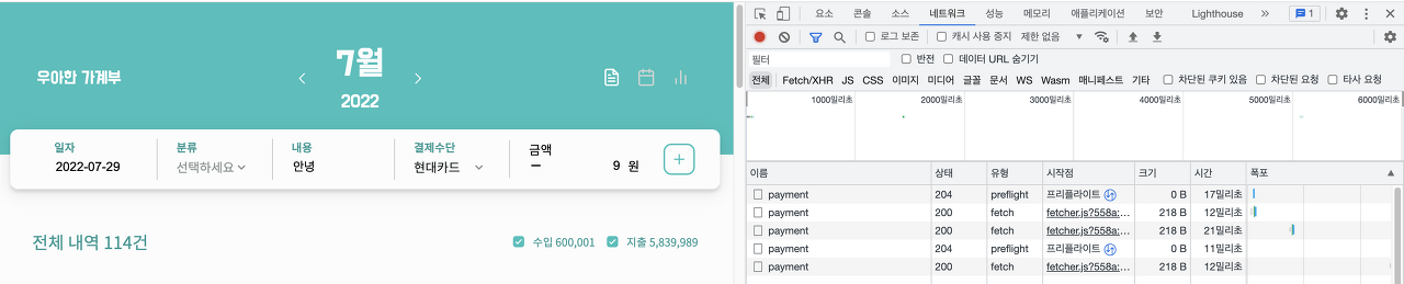 결제 내역 CRUD, 결제 수단 CRUD 시, API 요청을 보냅니다. API 요청을 보내고 변경 사항을 UI에 반영하기 위해서는 강제적으로 새로고침을 통해 네트워크 통신을 통해 새로 받아옵니다. 이 과정에서 새로고침에 따른 깜빡임 문제, 네트워크 통신 비용 문제가 있었습니다.