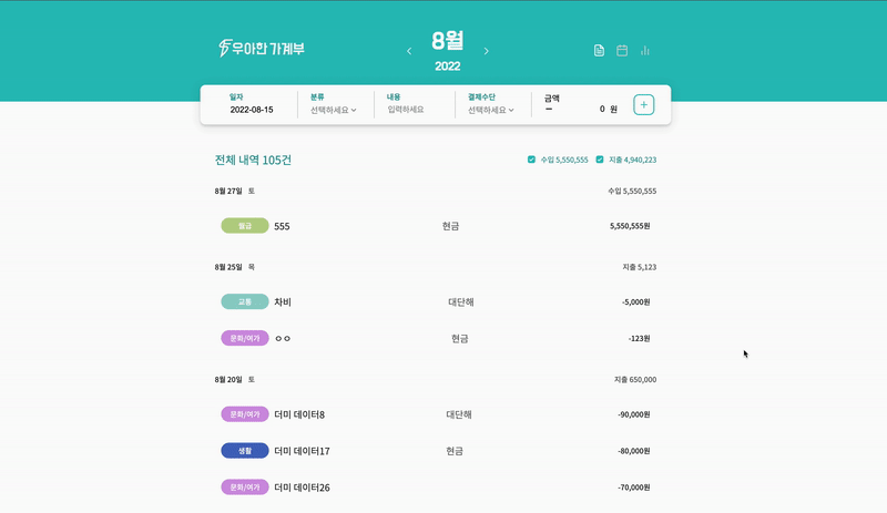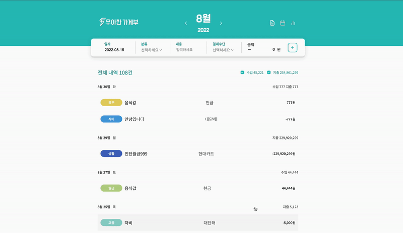 3번째 프로젝트는 2주간 "가계부 서비스" 프로젝트였다.