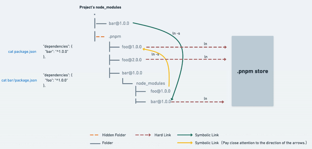pnpm은 symlink를 사용하여 프로젝트의 직접적인 의존성만을 모듈 디렉토리의 루트로 추가합니다.