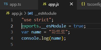app.ts를 컴파일 해줌으로써 app.js가 자동생성된 모습을 볼 수 있습니다.!