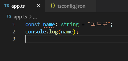 우선 app.ts 파일을 만들어주고 간단한 TS문법을 이용하여 출력해봅시다.