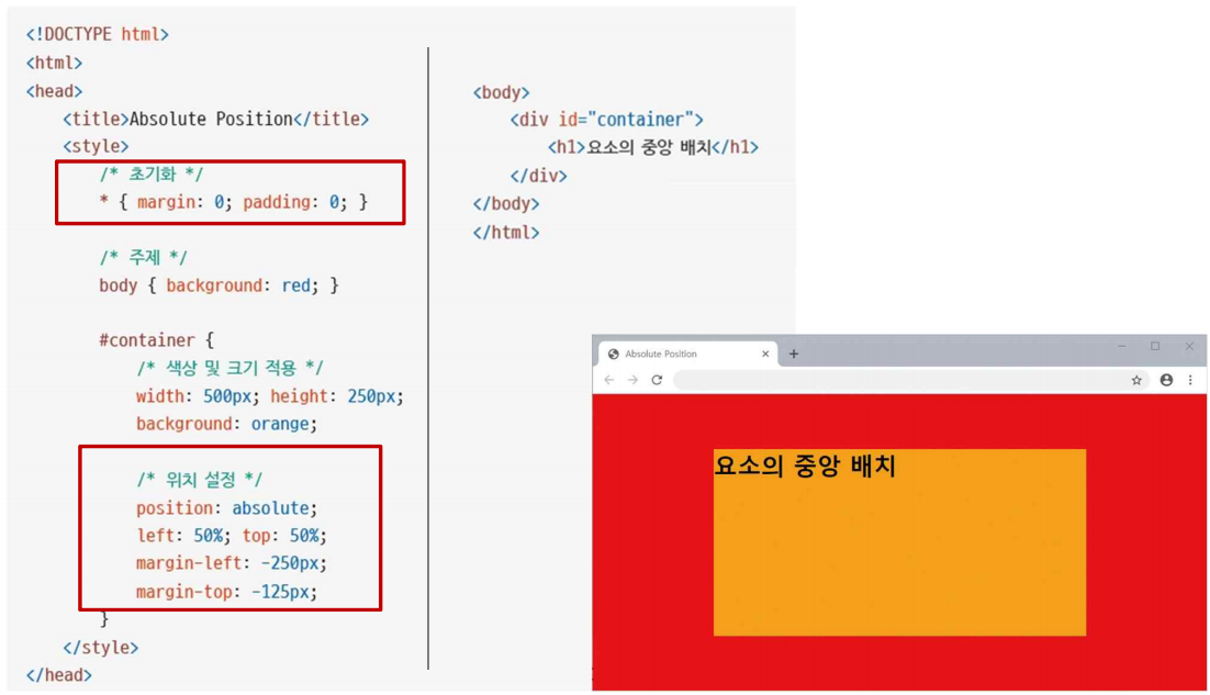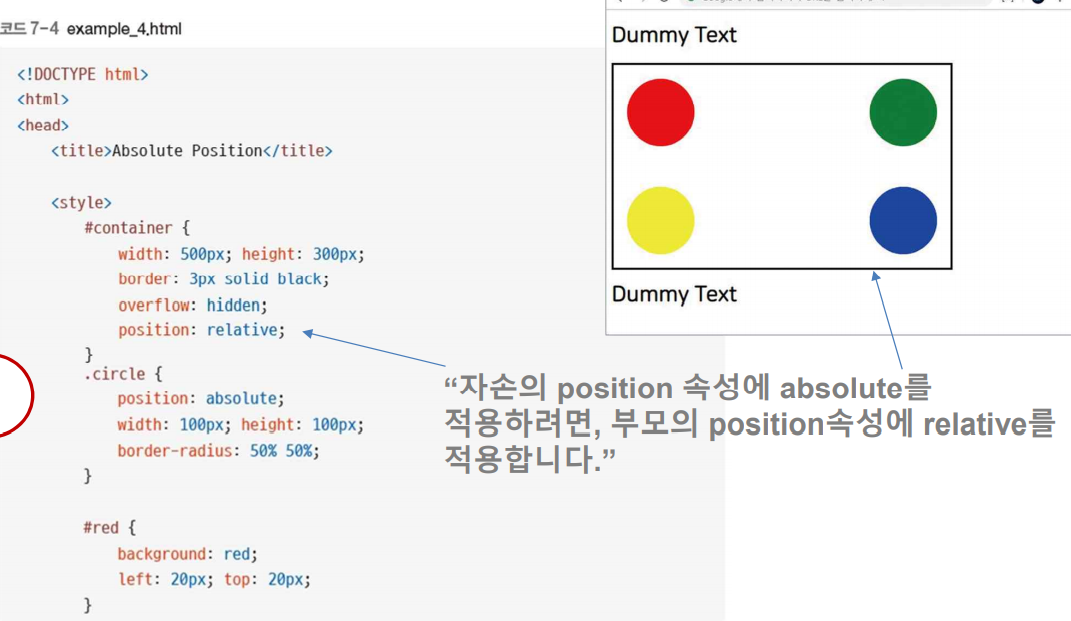 자손의 position 속성에 absolute를 적용하려면 부모의 position 속성에 relative를 적용