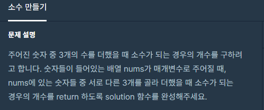 프로그래머스 Level1 소수 만들기 문제