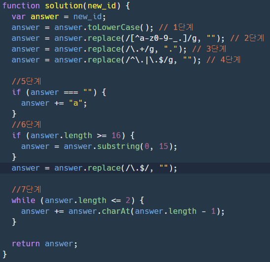 [프로그래머스 JavaScript] 신규 아이디 추천 본문
