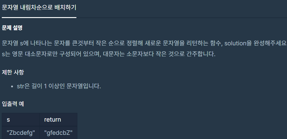 프로그래머스 Level1 문자열 내림차순으로 배치하기